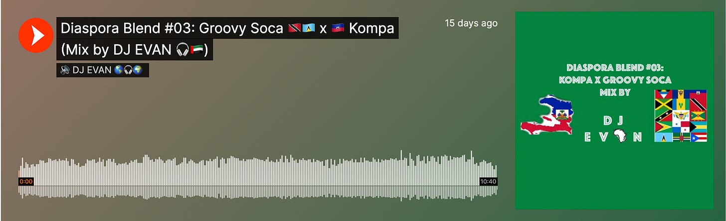 Evan is an educator, traveler, and DJ who blends sounds from every corner of the African Diaspora. His mixes & performances highlight common musical ground between Africa, the Caribbean, and Black America. His latest mix blends the sound of Haitian Kompa with Soca music from Trinidad & St. Lucia.